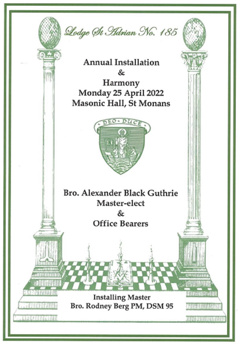 Brother Alexander Guthrie was installed as Master and the office bearers installed into their respective offices at Lodge St. Adrian No.185 on Monday 25 April 2022.