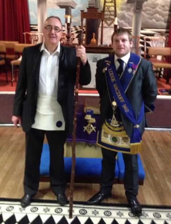 PGM Bro. Andrew E Paterson JP with RWM Bro. Leigh Yule
