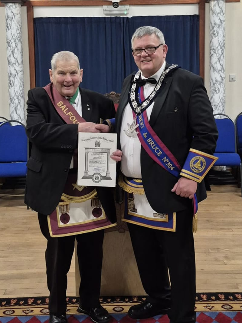 Brother Ian Miller Organist of Lodge Balfour Melville No.809 was made an Honorary Member of Lodge King Robert de Bruce No.304 on this day.