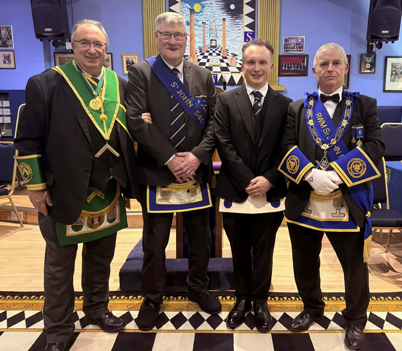 Worshipful Substitute Provincial Grand Master Brother Ian Cockburn visited Lodge St John No.540 on Wednesday 18 March 2026 where he witnessed an Entered Apprentice, the son of the Master Brother Gary Gibb being Passed to the Second or Fellow Craft Degree.