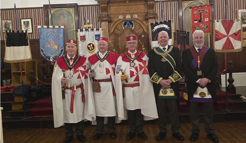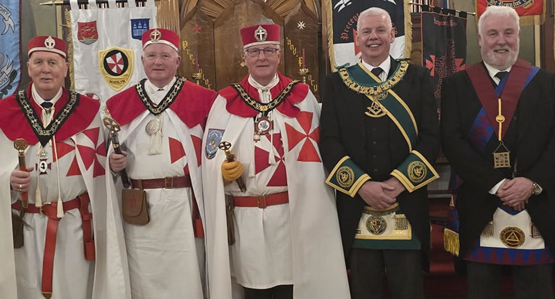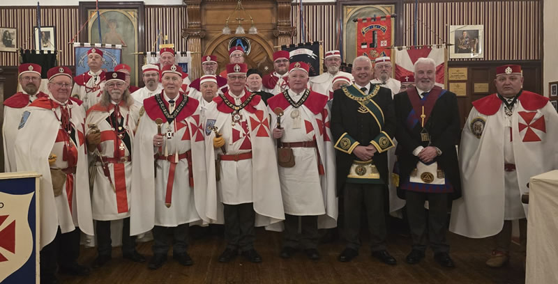 Visitors included Most Excellent Companion Willie Rice Second Provincial Grand Principal of the Provincial Grand Royal Arch Chapter of Fife and Kinross plus two District Provincial Grand Priors led by Right Eminent Frater Ian Duff District Grand Prior of Tay Valley District Grand Priory along with Right Eminent frater Ian Murray District Grand Prior of Ayrshire District Grand Priory.