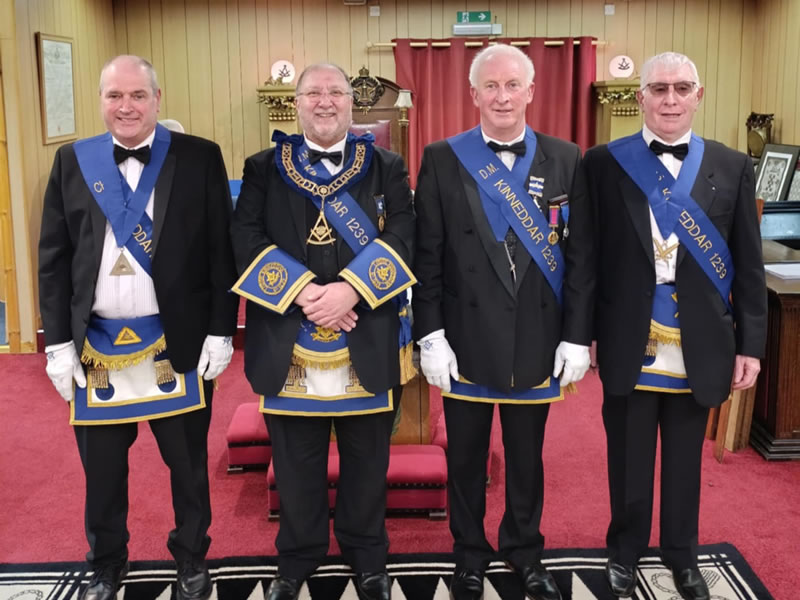 Installing Masters on this occasion were Brother James McFarlane, Brother William Murphy and Brother Roy Dunsmore all Past Masters of Lodge Kinneddar No.1239.