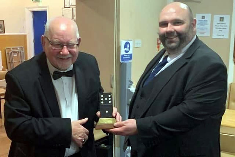 The Right Worshipful Master of Lodge Balgonie 764, Bro. Ian Stevenson, presented the Right Worshipful Master of Lodge Rothes St. John 35, Bro. George Johnson, with the original Glengonie Domino Trophy and commented that “it’s been a great pleasure to welcome RWM Bro. Johnson and the Brethren of Lodge Rothes St. John 35 into Markinch to see the annual domino tournament reinstated, and to continue to build the bonds of friendship between both lodges.”